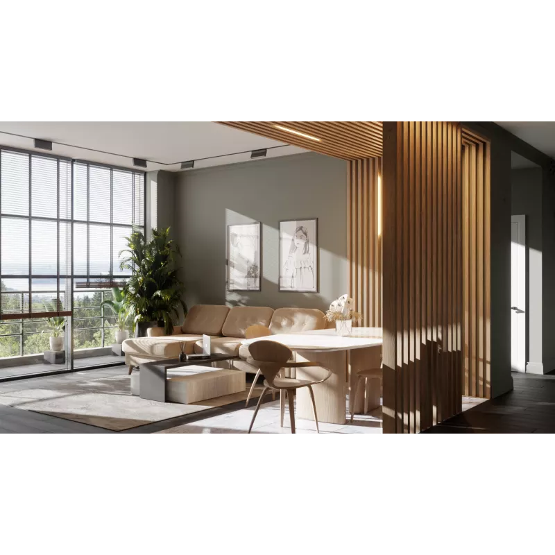 Декоративный Брус для зонирования помещений, используется в качестве открытых перегородок или объёмных стеновых панелей.