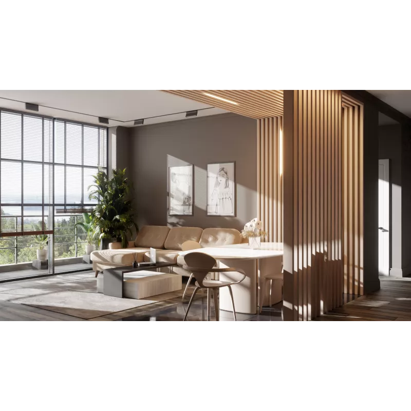Декоративный Брус для зонирования помещений, используется в качестве открытых перегородок или объёмных стеновых панелей.