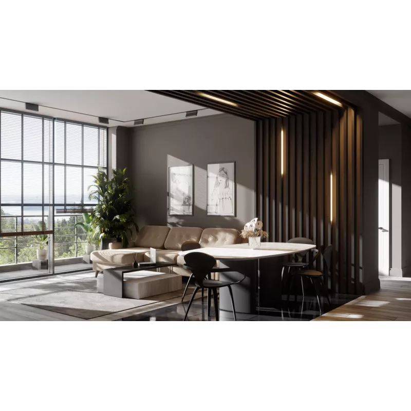 Декоративный Брус для зонирования помещений, используется в качестве открытых перегородок или объёмных стеновых панелей.
