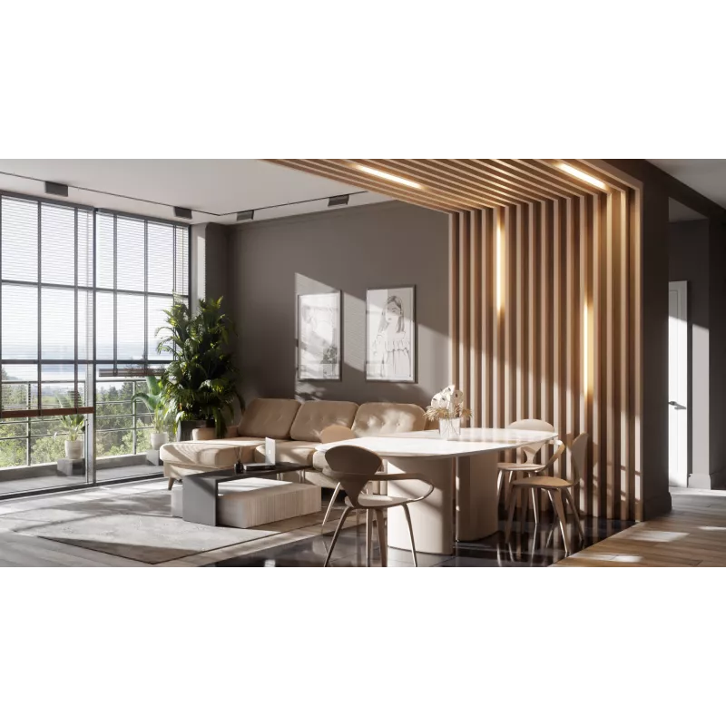 Декоративный Брус для зонирования помещений, используется в качестве открытых перегородок или объёмных стеновых панелей.
