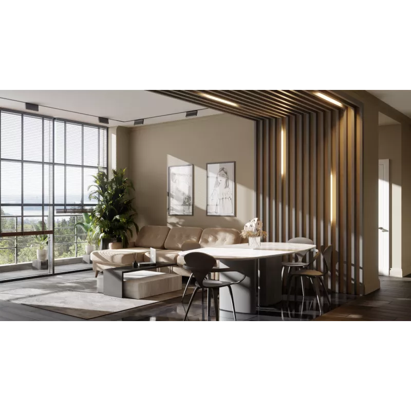 Декоративный Брус для зонирования помещений, используется в качестве открытых перегородок или объёмных стеновых панелей.